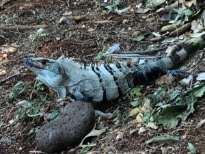 We had a pretty swimming pool with deliciously cool water. Bugs? Yes, a few. We were told “this is their home” and indeed it was. Some ants. A scorpion. A few mosquitos (but not nearly as much as we’d expected). This part of Costa Rica (the northwestern coast) is HOT and dry and a bit dusty. Certain of the trees actually defoliate this time of year, so was surprised to see these bare trees, which had their own strange beauty. But there was also a proliferation of swaying palm trees and others, lush with green foliage. Flowers and flowering bushes.